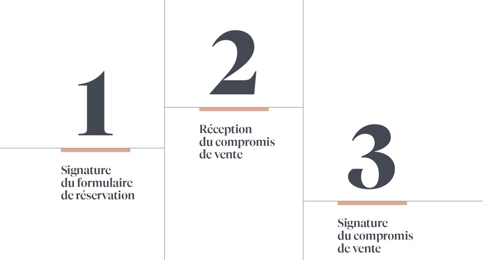Le rendez-vous a lieu chez notre notaire en présence de votre notaire et de notre Directeur commercial pour la signature de l’acte authentique de vente.