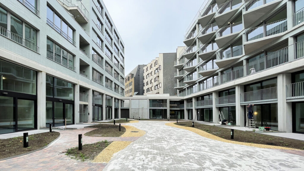Het project voorziet studio’s, appartementen met 1, 2 of 3 slaapkamers, die bijna allemaal een privaat buitenterras hebben.